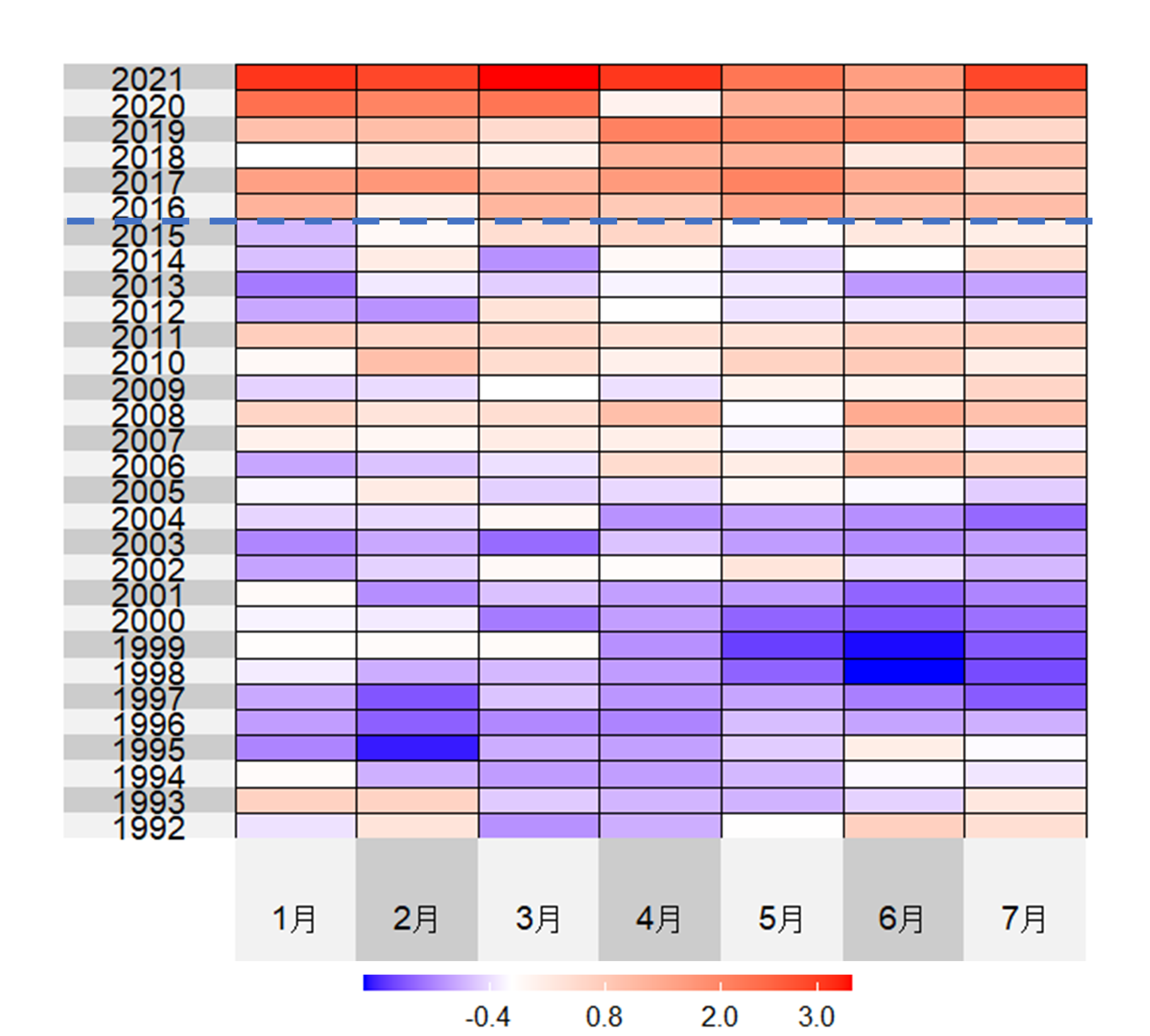 (1) イカナゴは冬に生まれ、春~初夏にかけて活発に餌を食べて栄養を蓄えた後、夏に砂に潜って冬まで眠る「夏眠」という習性を持っています。このため、夏眠に入る前までに十分な栄養を蓄えられるかどうかが、生き残りにとって重要です。そこで、1~7月における魚食性魚類14種(サワラ、ブリ、ハモ、スズキ、ヒラメなど)の漁獲情報を解析し、捕食者の分布状況の変化を調べました。その結果、2015年以前と2016年以降で状況は大きく異なり、2016年から捕食者が急激に増加していたことが明らかになりました(図2)。