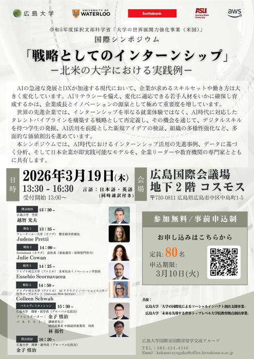 Home2026年3月19日(木)に、2023年度採択 文部科学省「大学の世界展開力強化事業(米国)」国際シンポジウム「戦略としてのインターンシップ ― 北米の大学における実践例 ―」を開催いたします。