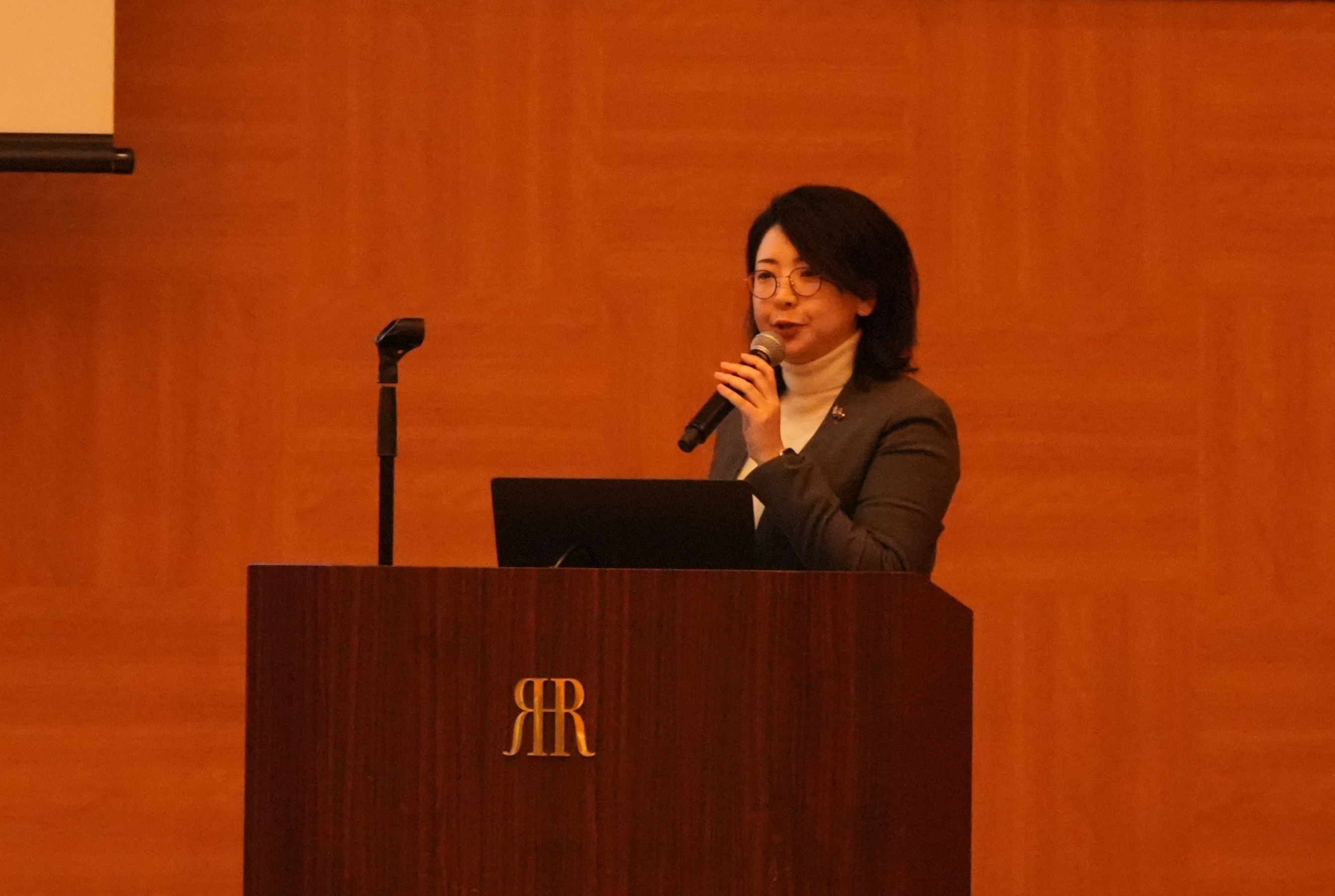 総会の最後には、内田康雄教授(大学院医系科学研究科)が「創薬を加速させる広島大学独自の体制と技術」について、また松崎芽衣助教(大学院統合生命科学研究科)が「広大発ゲノム編集技術を利用したアレルギー低減卵の開発」について、それぞれ研究内容を発表しました。
