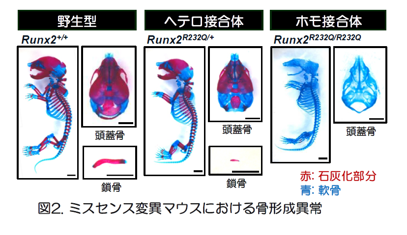 【研究成果】鎖骨頭蓋異形成症の新たな病態モデルを確立 〜Runx2のミスセンス変異が骨と歯の形成に与える影響〜