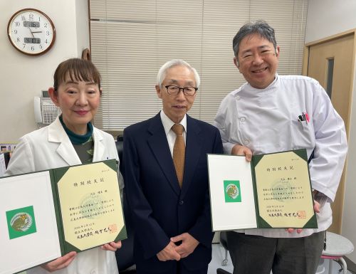 令和8年4月10日、大谷博正様ならびに大谷晴美様へ、特別校友記を贈呈しました。