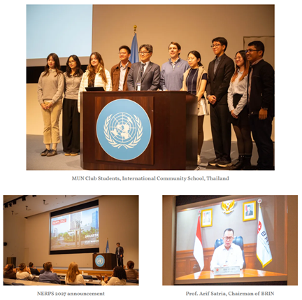 最後に、国際連合大学のTshilidzi Marwala学長・国連事務次長が、締めくくりの挨拶として、本国際会議を契機とするパートナーシップをさらに発展させ、研究や学術協力に活かしていくとともに、具体的な行動を促進する政策につなげていくよう参加者に促しました。続いて、議長を務めた金子慎治 広島大学理事・副学長(グローバル担当)が、本国際会議の成果について総括し、特筆すべき出来事として、タイのInternational Community Schoolの模擬国連クラブの高校生が今次会議に参加したことに言及するとともに、第6回目となる2027年NERPS国際会議が、2027年3月17日から20日にかけてインドネシア・ジャカルタにおいてNational Research and Innovation Agency (BRIN) と共同で開催されることを発表しました。その後、BRINのArif Satria長官がビデオメッセージの中で、次回のNERPS国際会議を共催できることを光栄に思っているとして、参加者に向けて歓迎の言葉を述べて、本国際会議は閉幕しました。