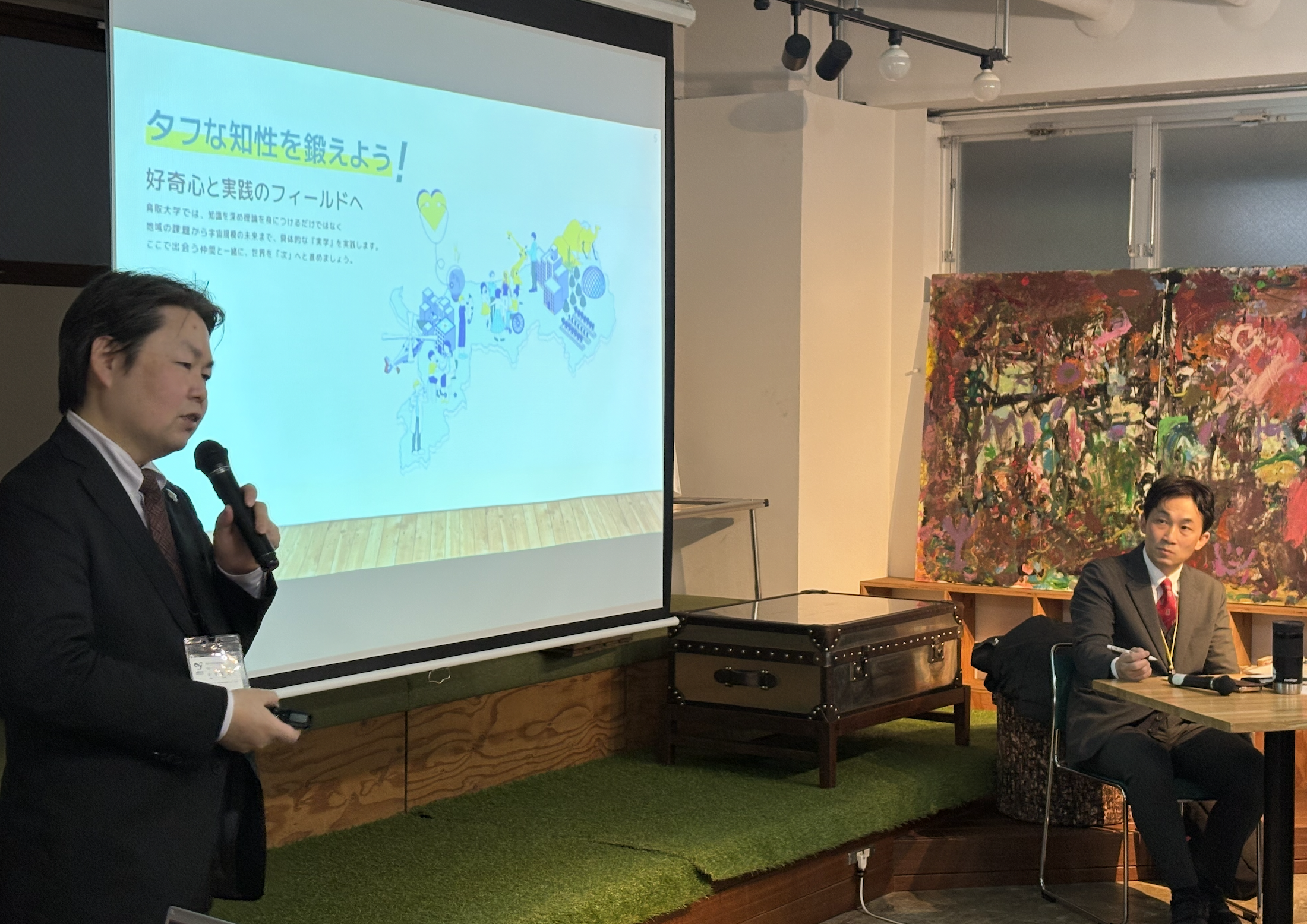 プログラムでは、中国経済産業局長 林 揚哲 氏の御挨拶に続き、基調講演として鳥取大学の古賀敦朗教授より、病院横断型の組織連携や地域共創の取り組みについてご紹介いただきました。