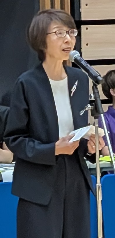 本学からは,本大会会長の越智光夫学長の代理として坂田桐子副学長(学生支援・ダイバーシティ担当)が,開会式に出席しました。坂田副学長は,日ごろの練習の成果の発揮や大学生同士の交流について触れた越智学長の挨拶を代読するとともに,参加者の健闘を祈りエールを送りました。