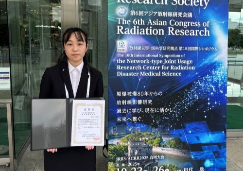 • 本学学生が日本放射線影響学会第68回大会/第6回アジア放射線研究会(JRRS/ACRR2025)合同大会で日本放射線影響学会優秀演題発表賞(Award for Excellent Presentation (JRRS/ACRR2025))を受賞しました