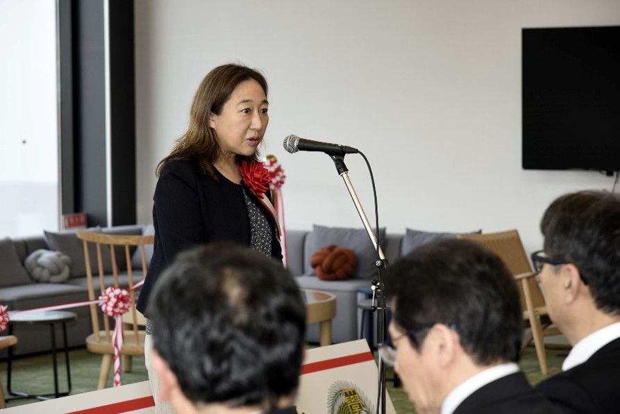 続いて、文部科学省科学技術・学術政策局 科学技術・学術総括官の井上睦子氏による挨拶では、「異なる組織の研究者が一つの施設内にいるという環境を存分に生かして、本施設が大きなイノベーション・エコシステムを生み出す原動力となる」ことへの期待が寄せられました。
