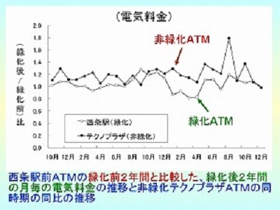 「ATMの屋上緑化で、エアコンの消費電力を年間で25%削減(消費電力量300キロワット時、二酸化炭素では約2トン、電気料金では約8万円の削減)できることが分かった。屋上緑化は、地球温暖化だけでなく、コスト削減に繋がることが実証できたので、ATM用の設置費用約40万円は約5年間で償還できる。また、雨水を一時的にためるので、多くのビルが屋上緑化をすれば集中豪雨対策にもなる。今後の普及に力を入れたい」と力を込める教授です。