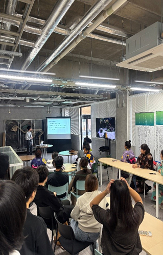 英語での発表は藤井さんにとって初めての経験でしたが、留学生との交流を通じて「英語を学ぶモチベーションがさらに高まった」と話していました。報告会後、留学生やAIMSプログラム参加者は学部国際交流イベント「MIXER」にも参加し、交流を楽しみました。