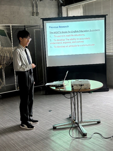 金光学園高等学校2年の藤井裕生さんが、探究活動の一環として 「The way Japanese people can speak in English fluently(どうすれば日本人は英語を話せるようになるのか)」 と題した成果を英語で発表しました。報告会には30名を超える留学生が参加し、藤井さんと活発な議論や交流を行いました。