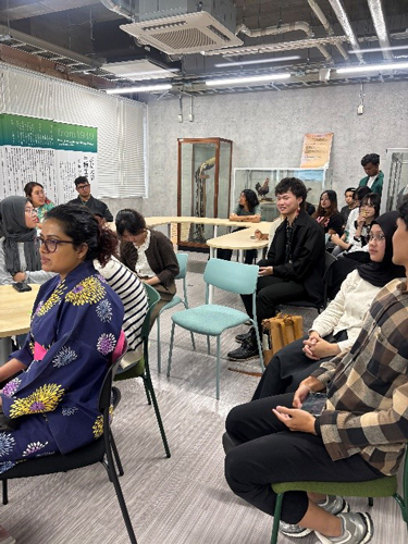 藤井さんは、2025年8月に生物生産学部および大学院統合生命科学研究科の留学生に対し、「留学生が日本語を学ぶためには」というテーマでオンラインアンケート調査を実施し、多くの留学生が回答していました。今回の報告会では、その結果を英語でまとめて発表し、アンケートに協力してくれた留学生やAIMSプログラム参加者と英語で意見交換を行いました。