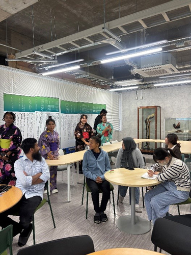 報告会に浴衣姿で参加したAIMSプログラム参加者と留学生