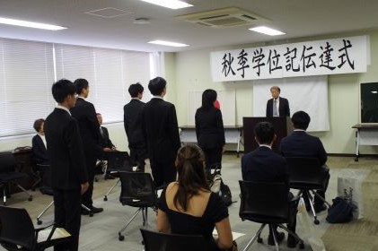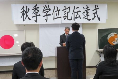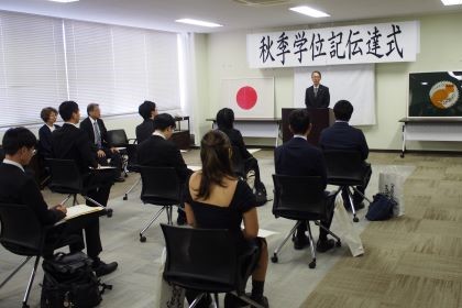 令和7年9月19日(金)14時30分から「令和7年度 総合科学部・大学院人間社会科学研究科秋季学位記伝達式」を総合科学部多目的室にて挙行しました。