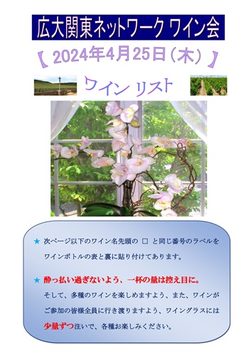 広島大学関東ネットワークは2022年からワインパーティーを定期開催しています。その場で提供された、その道のエキスパートが精選したワインリストを順次公開していきます。