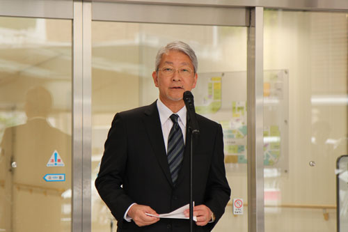 冒頭挨拶で越智学長は「基礎研究で得られた成果を臨床に応用するための橋渡し研究の推進、またそれらを担う人材の育成を通じて世界や地域に向けて広く社会へ還元していきたい」と期待を述べました。