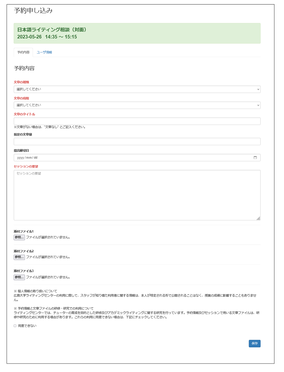 ユーザ登録が完了すると、相談の予約をすることができます。