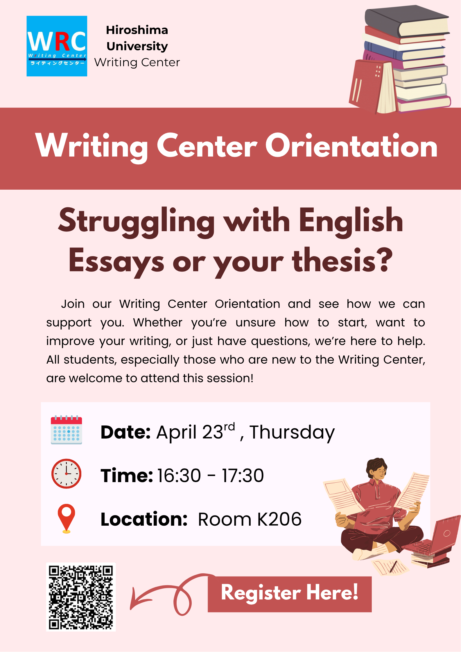 この度、ライティング相談に関する英語ミニガイダンスを実施いたしますので、この機にぜひ、ご参加を検討してください。